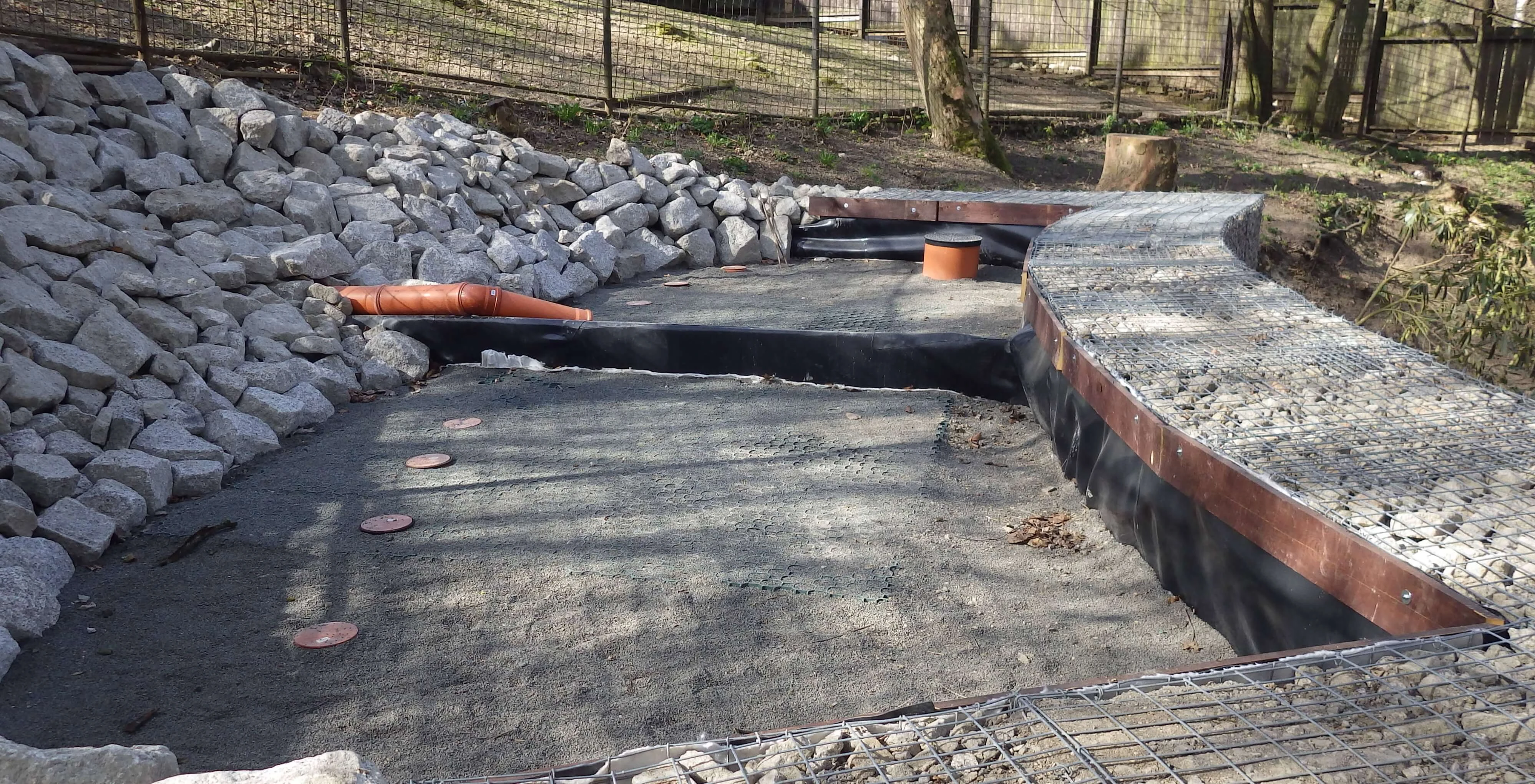 Výstavba probíhala za plného provozu ZOO, tedy při pohybu návštěvníků a za přítomnosti zvířat. Ne všechna zvířata pohyb techniky a hluk snáší, proto bylo nutné tomu přizpůsobit pracovní dobu i nasazení techniky.