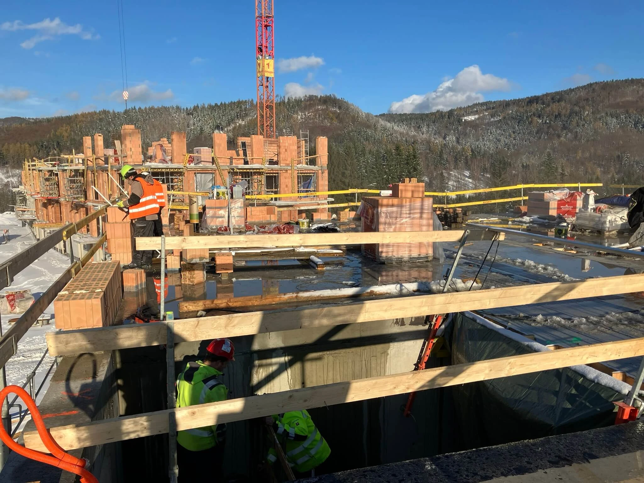 Od srpna 2025 zajišťuje Quality Management na Nové Kunratické výkon technického dozoru stavebníka. Lednový kontrolní den – pravidelné setkání všech zúčastněných nad postupem prací – ověřil správnou návaznost jednotlivých etap výstavby i vysokou kvalitu prováděných konstrukcí. Tým technického dozoru dohlíží na to, že všechny práce probíhají přesně podle schválené projektové dokumentace a stanoveného harmonogramu. „Naším úkolem je pohlídat kvalitu každého detailu a včas řešit případné nedostatky,“ vysvětluje při kontrole Ing. Petr Fleischner, druhý z dozorujících techniků, zatímco ukazuje na čerstvě zabetonovanou stěnu suterénu. Quality Management tímto dohledem zajišťuje investorovi jistotu, že výstavba pokračuje bez problémů, a případné změny či komplikace jsou řešeny ihned na místě. Kromě kvality a technologických postupů sleduje TDS také dodržování bezpečnostních pravidel a koordinuje kontrolní dny se zhotovitelem – to vše s cílem dovést projekt zdárně do cíle.